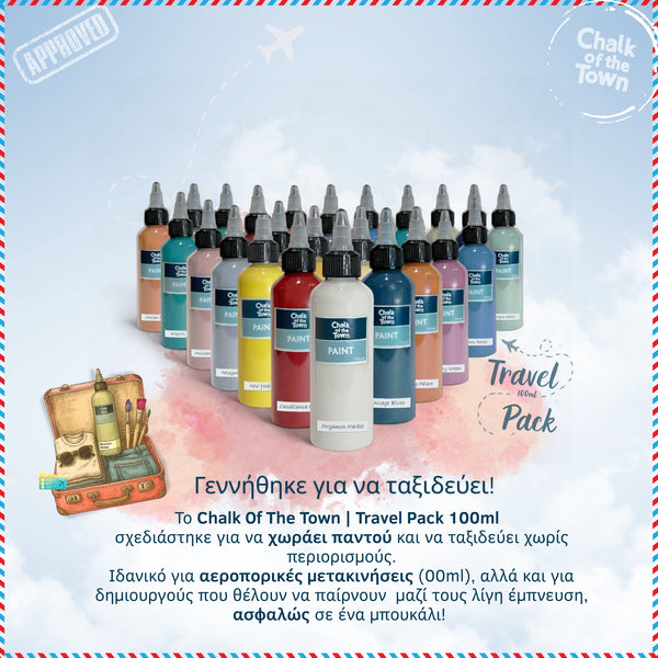 Εμπνευστήκαμε από τόπους μακρινούς αλλά και ελληνικούς και δημιουργήσαμε το Chalk Of The Town® Paint σε 34 διαφορετικές αποχρώσεις, για να ταξιδεύετε δημιουργικά, σε κάθε project!
