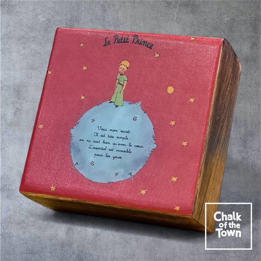 Ξύλινο κουτί με παράσταση "Little Prince Red" 12.5X12.5X6.5cm| Chalk Of The Town® Collectibles | Wooden Box "Little Prince Red"