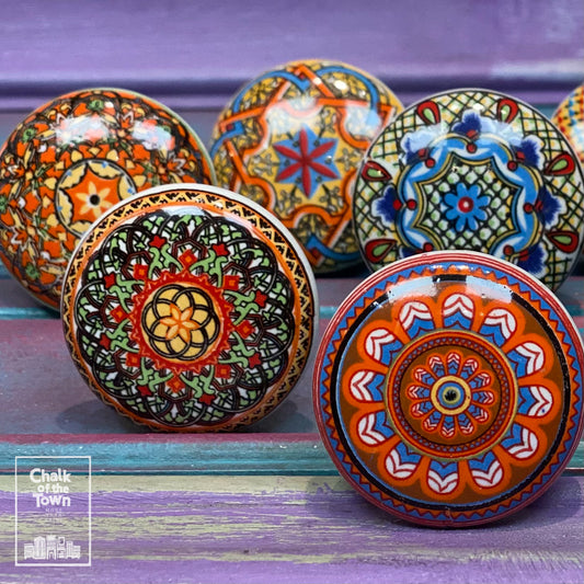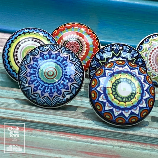 Σετ από 8 πολύχρωμα Boho Mandala Κεραμικά Πόμολα - design 1| Colorful Boho Vintage Mandala knobs (set of 8)