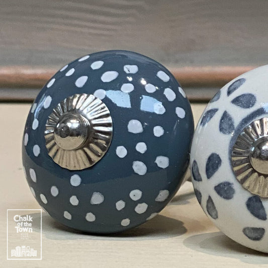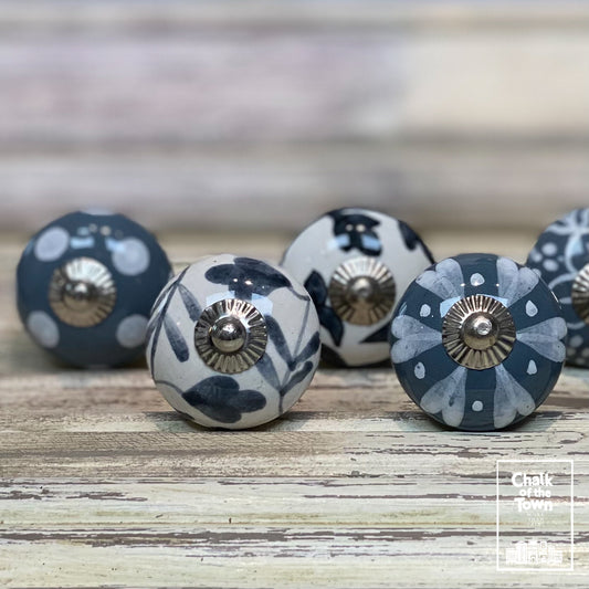 Σετ από 6 Vintage Κεραμικά Πόμολα |Γκρι - Λευκό | Grey - White | Vintage knobs (set of 6)