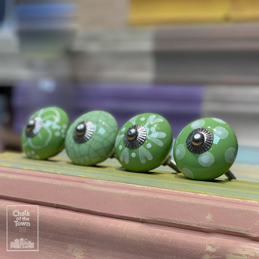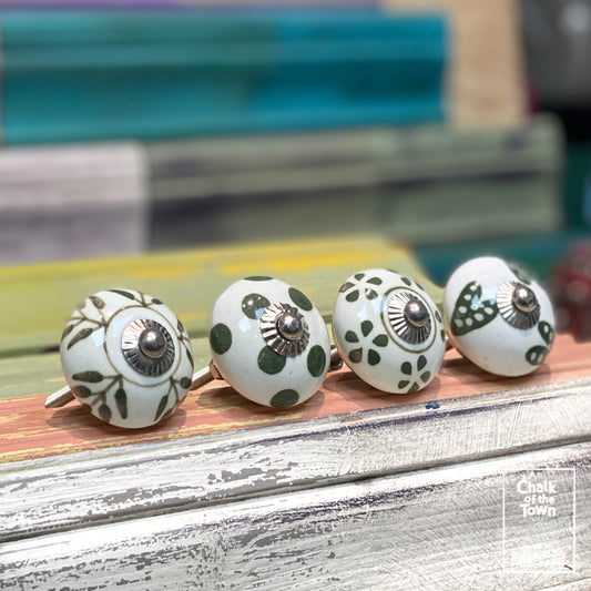Σετ από 4 Vintage Κεραμικά Πόμολα |Πράσινο - Λευκό | Green - White | Vintage knobs (set of 4) - Chalk Of The Town Vintage Knobs
